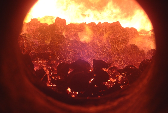 L’UVE est équipée d’un four oscillant, de forme cylindro-conique, qui tourne alternativement de chaque côté sur un peu plus de 200°. C’est la forme du four et ce mouvement oscillant qui font avancer les ordures ménagères dans la chambre de combustion. Il permet une combustion à haute température (environ 1000°C).